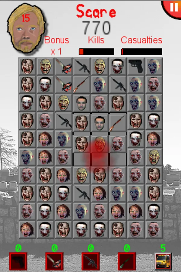 ZOMBIES! BENT ON DESTRUCTION! Classic Switch and Match Game. Match Zombies to Kill Them. Match Survivors to Save Them. Match Weapons to Fight Them. Find the Gold Gun? or Let the Grenade Destroy Everything? Will you be Zombie Bait or The Hero of a Zombie Apocalypse? The Choice is Yours!
