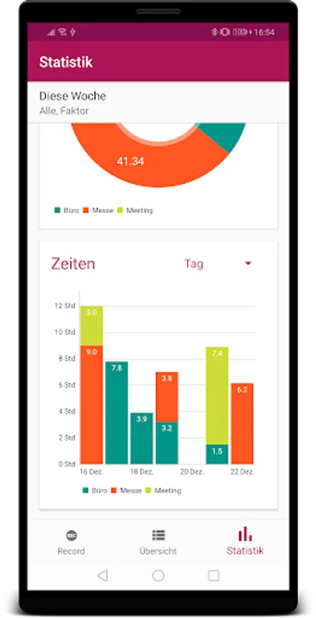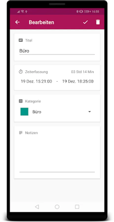 The app is perfect for recording working hours, but of course private times can also be easily monitored.
