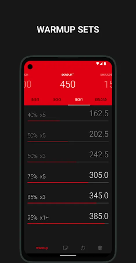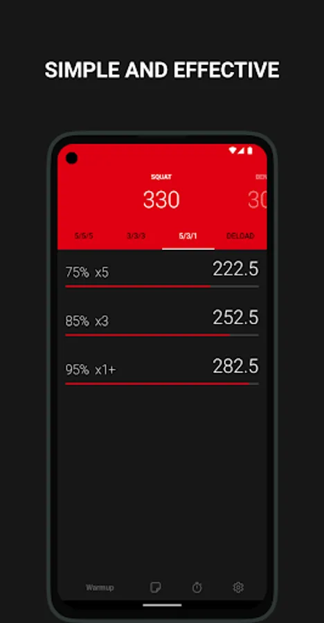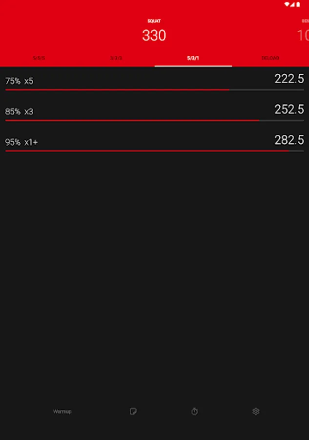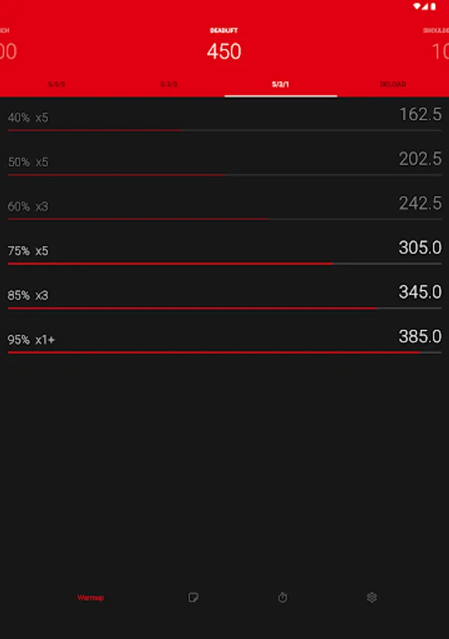 Makes it quick and easy to get a full overview of all weights, reps and sets based off your 1RM when you’re following the 5/3/1 program.