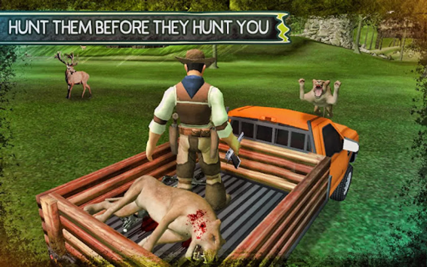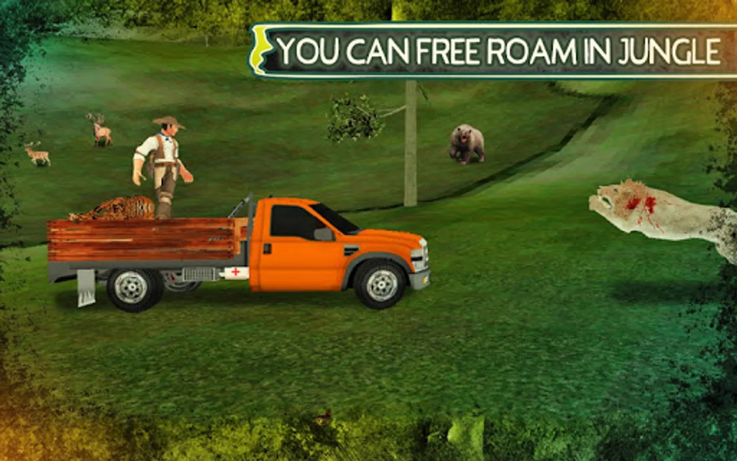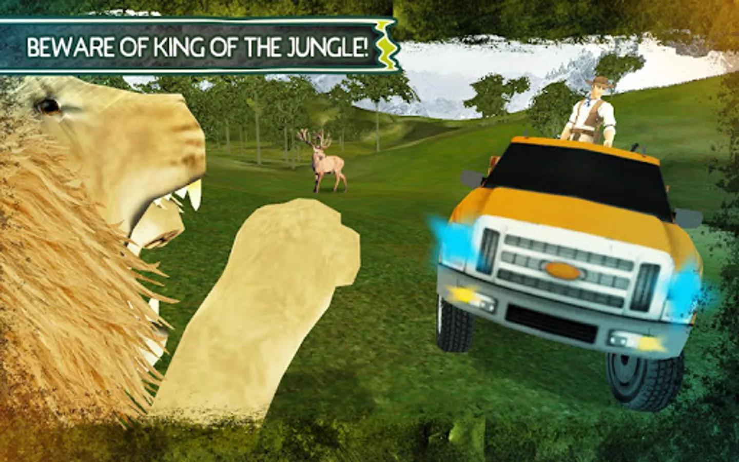 Wildlife Hunting Safari 4x4 is an ultimate action pack jungle hunting game, full of thrilling action and breathtaking adventures. Get ready to enjoy the most realistic wild life simulation in real safari jungle and experience the most deadly beasts in this hunting simulation challenge. The game is totally unique in its sense, as you not only have to perform the animal jungle hunting but also have to drive the 4x4 SUV monster truck in the mid of jungle zoo. Drive the monster truck simulator in the mid of difficult off road jungle tracks and get closer to the deadly carnivores to hunt them down in a single sniper headshot. The more you get close, the more accurate killer shots you can perform. So be a brave hunter and experience the most unique jungle hunting and shooting adventure. The jungle hunting sniper 3D challenge is real, so brace yourself for the angry lion attacks and protect yourself from other beasts.