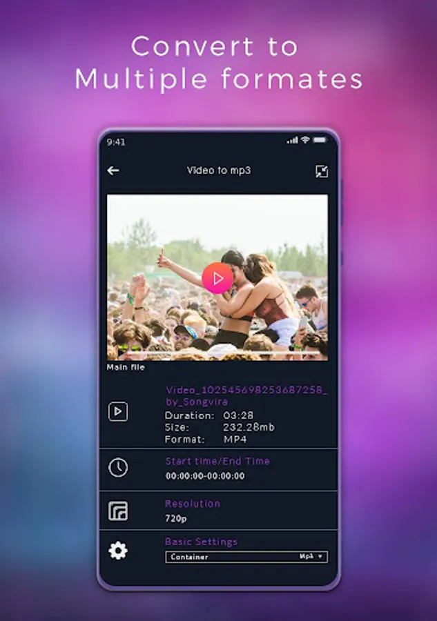 Convert video to MP3 various video formats: MKV, FLV, AVI