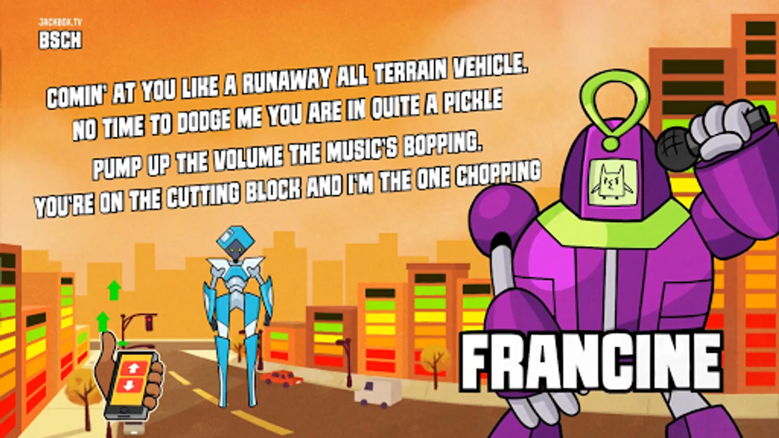 3) The lyric-writing game Mad Verse City (3-8 players). Channel your inner MC as a rap battling robot.