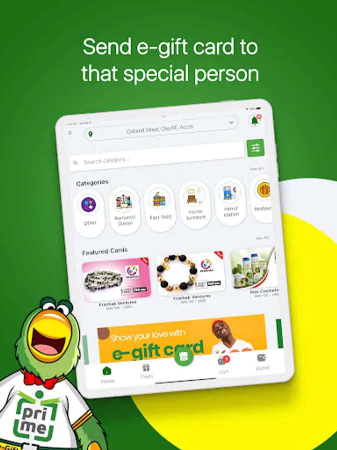 Prime e-gift is the perfect way of giving, the perfect last minute gifting solution. Prime makes it easy to buy and send e-gift card on the go, for yourself, family or a loved one. Choose from hundreds of brands you love; delivered instantly via Prime app or text message.