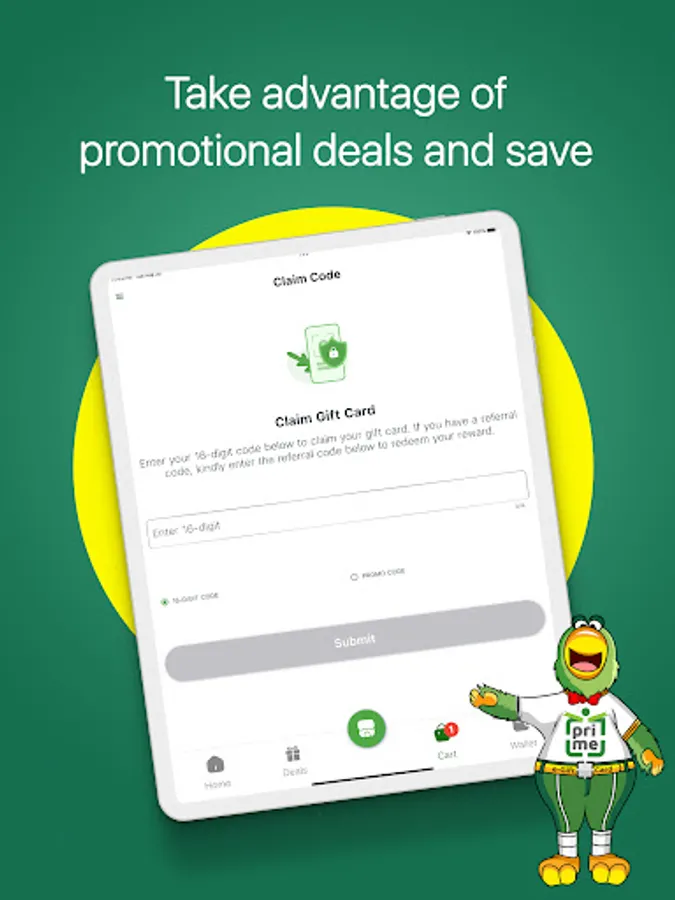 Login or register with a phone number to get access to all the member benefits. Buy Prime E-Gift Cards and access your Prime Card Wallet from the app.