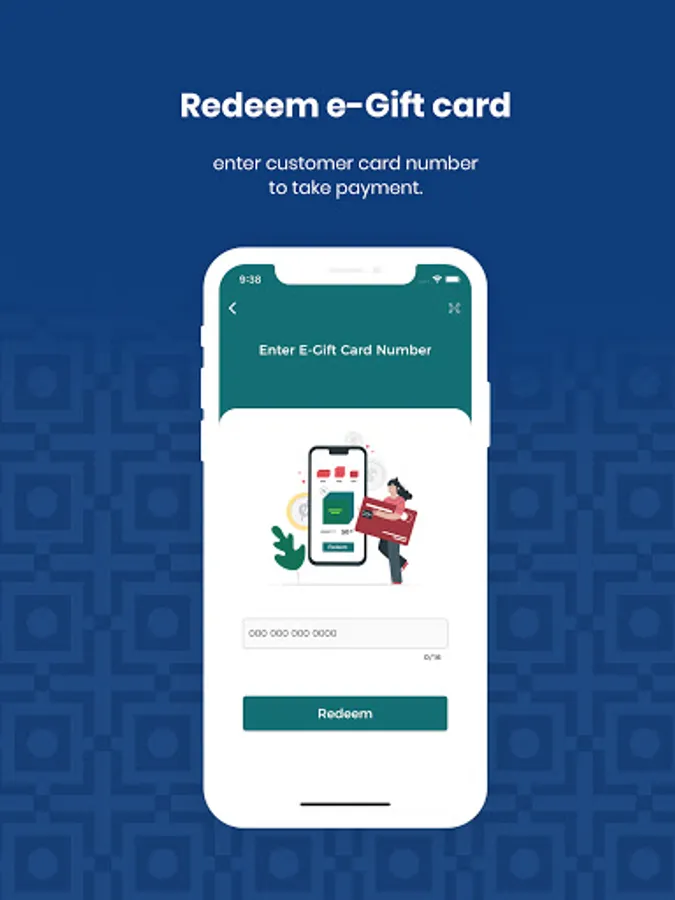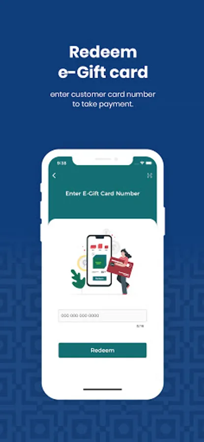Merchant enters this 16-digit code to redeem the card but this goes through sms verification from customer.
