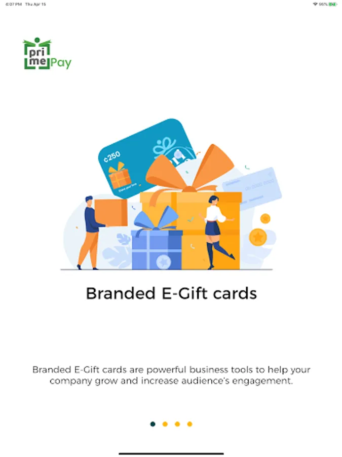 Bought Prime E-Gift cards can be converted into QrCodes on Prime E-Gift app. Merchants scan this Qr-Code to redeem the card.