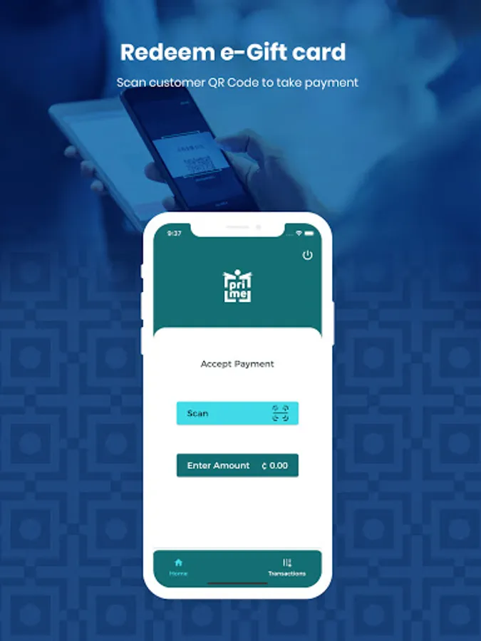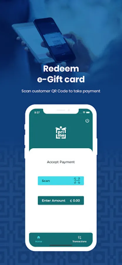 Prime Pay is used solely by merchants to redeem already purchased Prime e-gif cards by customers. Qr Codes can be obtained by buying a prime e-gift card on Prime platform using the Prime E-Gift app. Upon purchase of card, the card can be converted into a Qr-Code or generate 16-digit code. These two channels can be used to redeem the card by merchants using Prime Pay.