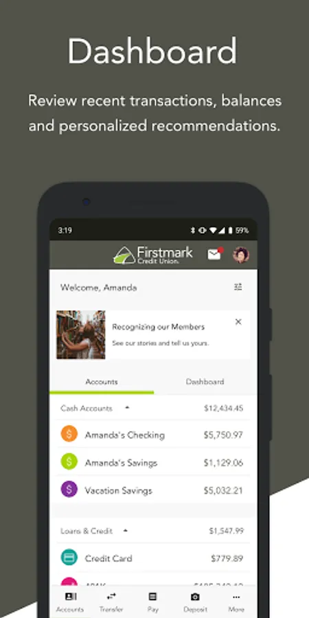 The Firstmark mobile app allows members convenient access to their finances anywhere, anytime.