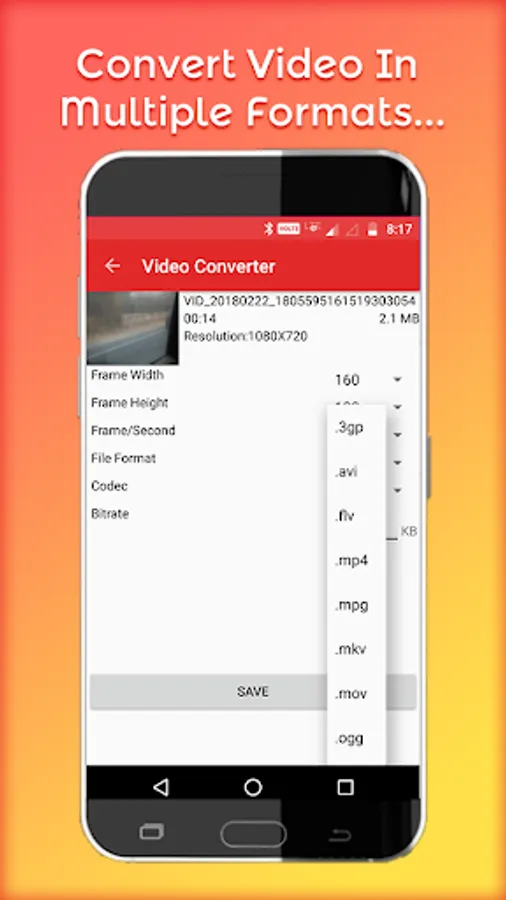 Video Converter to convert video file to other formats like 3GP, MP4, AVI, FLV, MP4, MPG, MKV, MOV, OGG, VOB, WEBM and WMV.