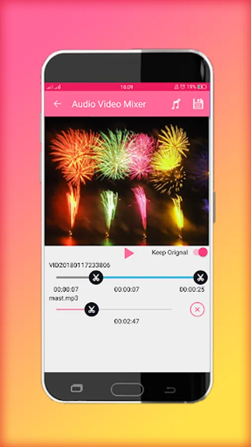 Our Audio Video Mixer has video cutter helps in video trim part. You can trim video clip and save it in your device.