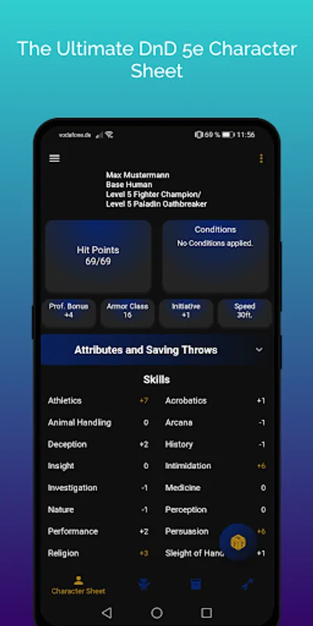DnD Ultima is the digital character sheet for your Dungeons and Dragons 5e character. Manage your stats, items, abilities and more, so you can focus on your game experience and have all the infos you need at the ready.