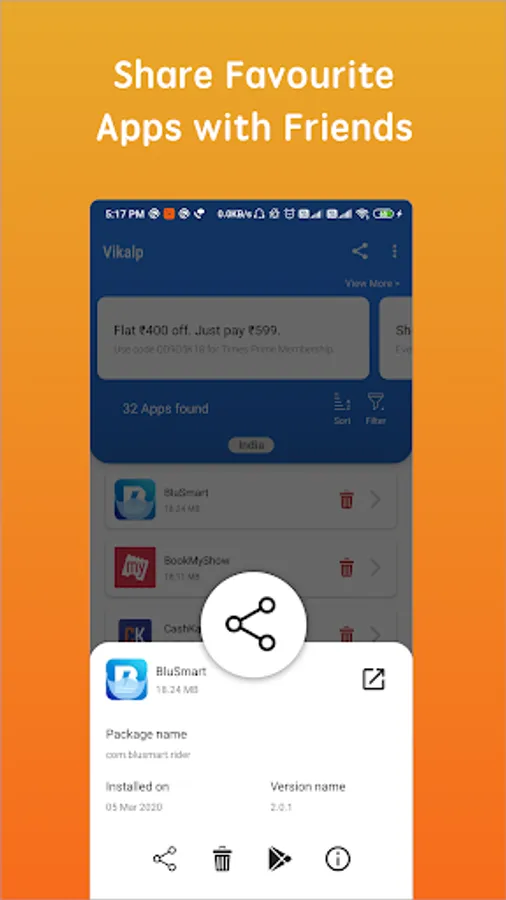 Get more control over your apps. Launch them quickly, visit their play store page or go to app settings almost instantly. Have fun together by sharing your favourite apps and games with your friends through Vikalp.
