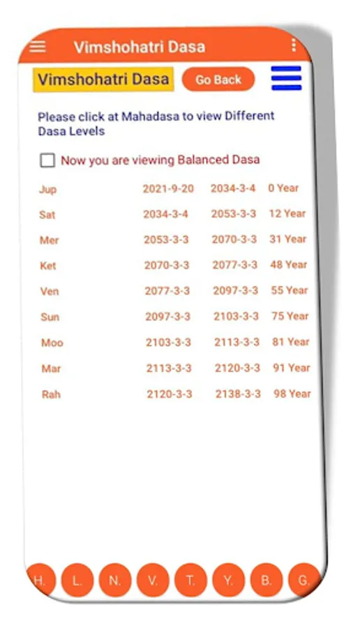 - VIimshohatri , Trivagi and Yogini Dasa with balanced and unbalanced system