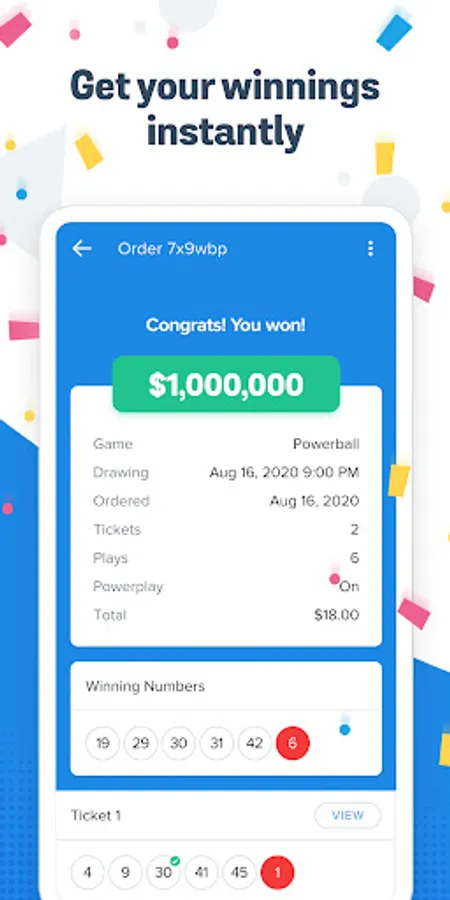 View a scan of your lottery ticket right in the app. You’ll also receive an email with your ticket serial number.