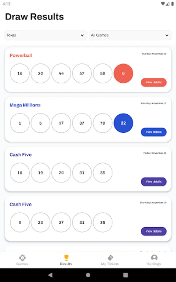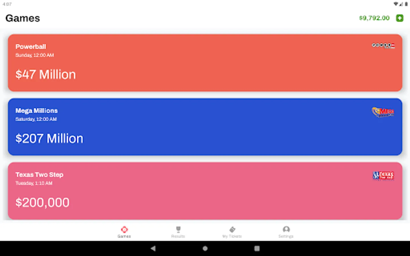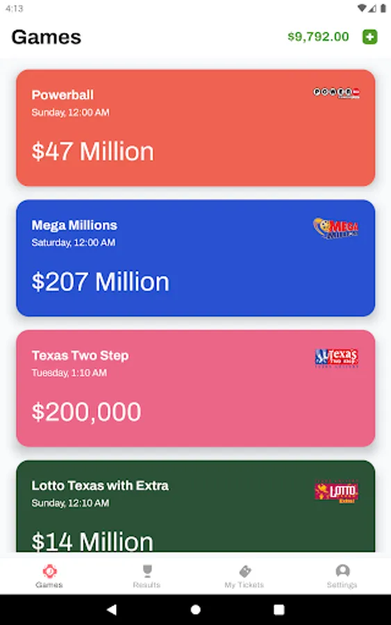* VARIETY OF GAMES – In addition to Powerball and Mega Millions, the Jackpot Lottery App offers all your favorite local state lottery games.
