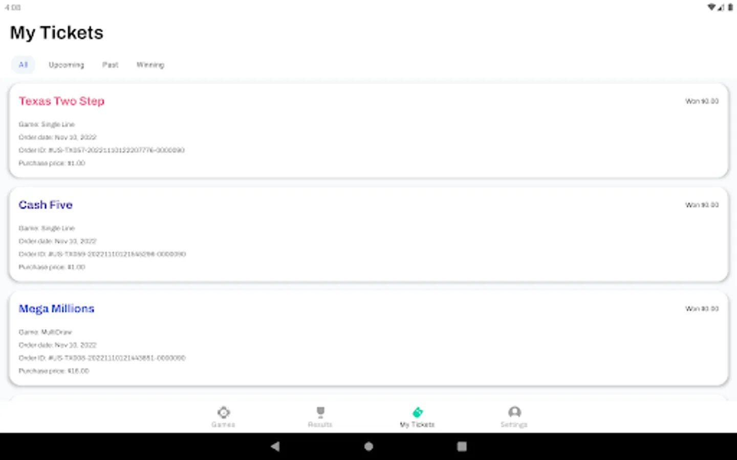 This app can only be used to order official state lottery tickets in the state of New York. If you are located in Texas or Ohio, please download the Android app on our website in order to order lottery tickets in those states.