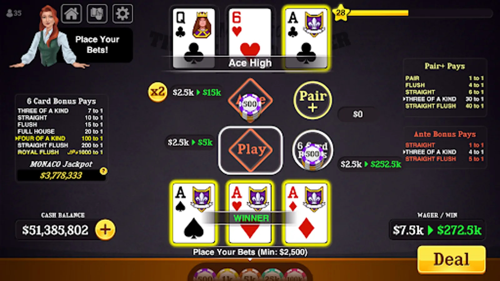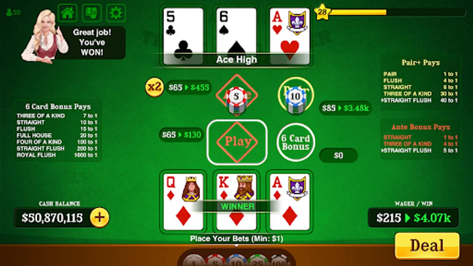 Triple Card Poker is the #1 three card poker game on mobile.