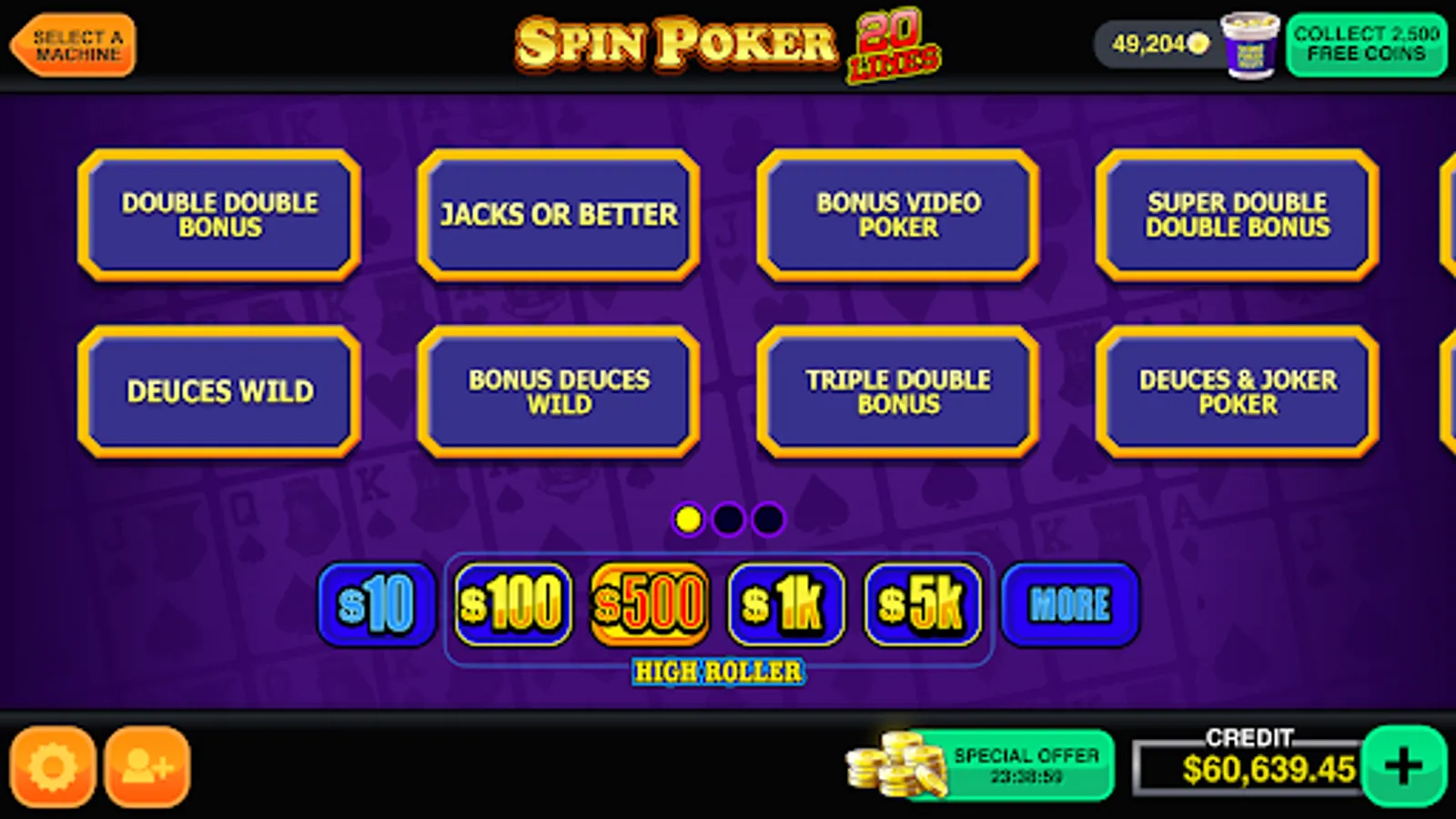 - Features Video Poker Multi-Hand + Spin Poker 20 Lines -