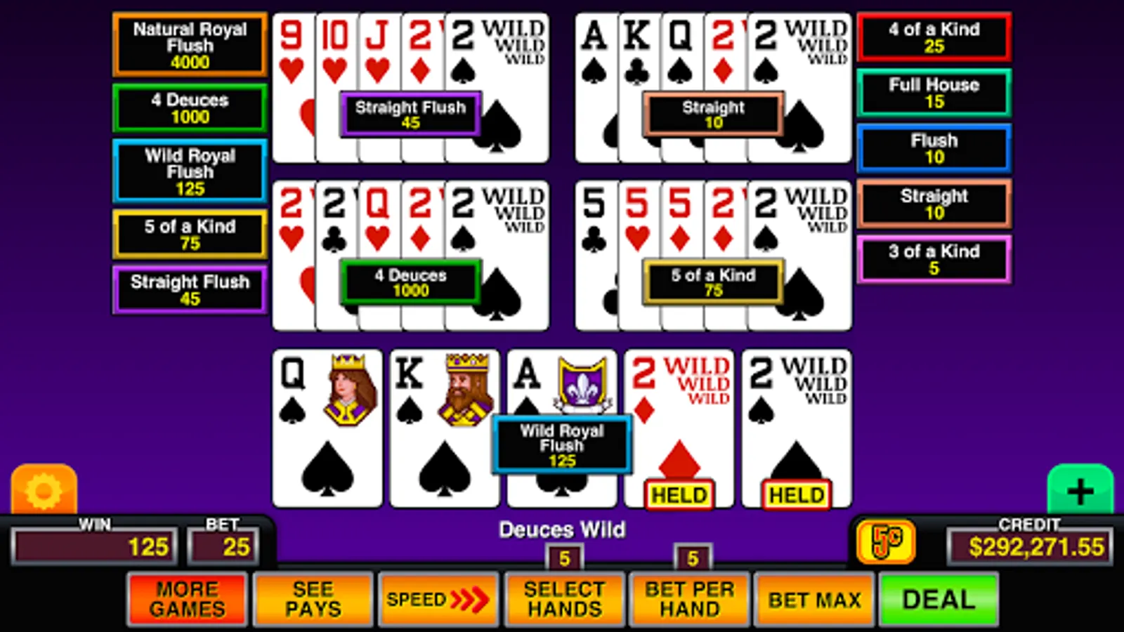 * Twenty-two (22) different, authentic Multi Hand and Spin Poker Deluxe games