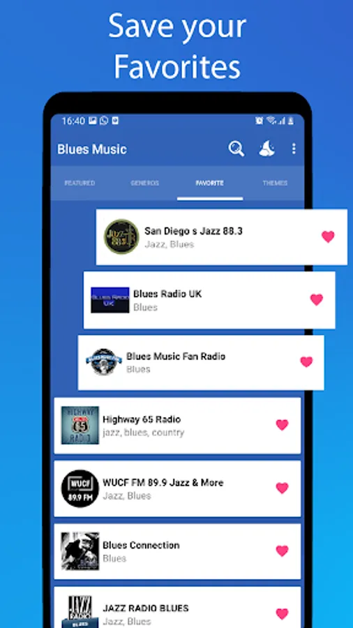 The radio stations that you will find in this blues music app are specialized in broadcasting the best classic blues rock songs.