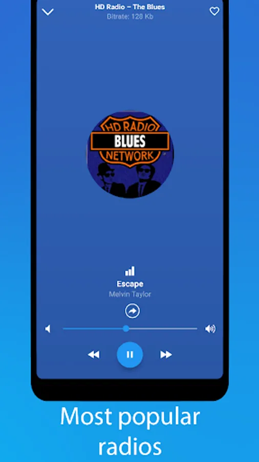 In this application you will find the best free radio stations, the most listened to rhythm and blues and rock bands and the new songs performed by artists and bands such as: BB King, Willie Dixon, Robert Leroy Johnson, Albert King, Chester Arthur Burnett, Buddy Guy, Blues Brothers, Steve Ray Vaughan, The Headhunters, Muddy Waters Band, The Moody Blues Greatest Hits, Roomful of Blues, The Bluesbreakers, The Fabulous Thunderbirds, Jon Spencer Blues Explosion, Mississippi Heat.