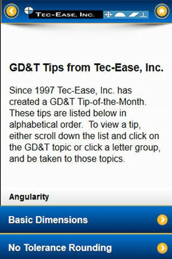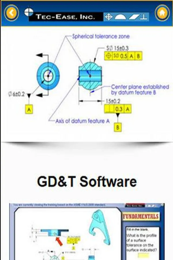 This free App from Tec-Ease, Inc. is our GD&T App Lite version and gives you access to 25 GD&T Tips and videos. Each Tip includes an easy to understand explanation of a GD&T concept, a graphic and video of Don Day explaining the Tip. Topics include Datums, Profile, Position, other Feature Controls and more. This App is a preview of our full GD&T App that features over 250 GD&T Tips. Install it, use it and when you fall in love with it, become a member of the Tec-Ease, Inc. Premium Site for access to the full version of our GD&T App.
