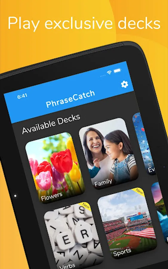 Split into teams and sit in a circle, each teammate try to guess the words or phrases that appear on the screen in the best way possible, but fast! PhraseCatch gives you enough categories to choose from over If you're looking to not give the other team a point, then you need to make sure you are not holding the device when the buzzer goes off. Perfect for the whole group. Best played with 6-10 players.