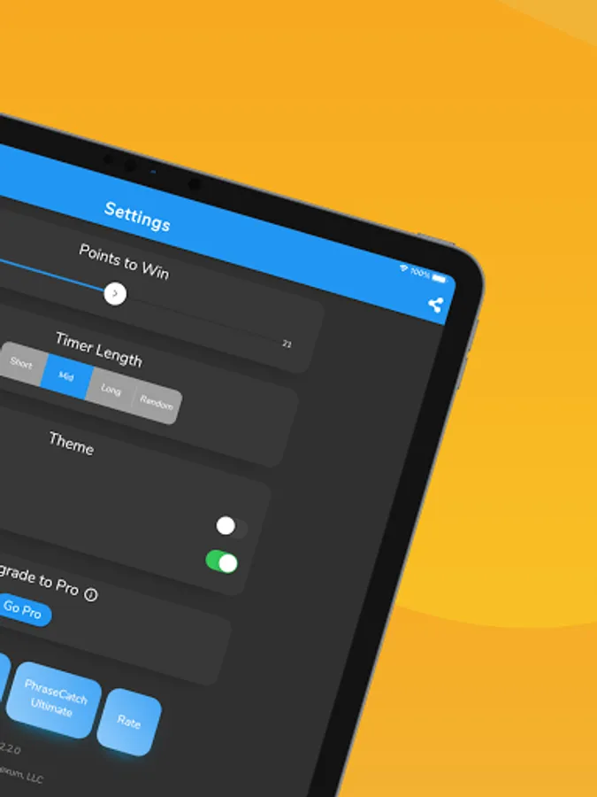 Split into teams and sit in a circle, each teammate try to guess the words or phrases that appear on the screen in the best way possible, but fast! PhraseCatch gives you enough categories to choose from over If you're looking to not give the other team a point, then you need to make sure you are not holding the device when the buzzer goes off. Perfect for the whole group. Best played with 6-10 players.