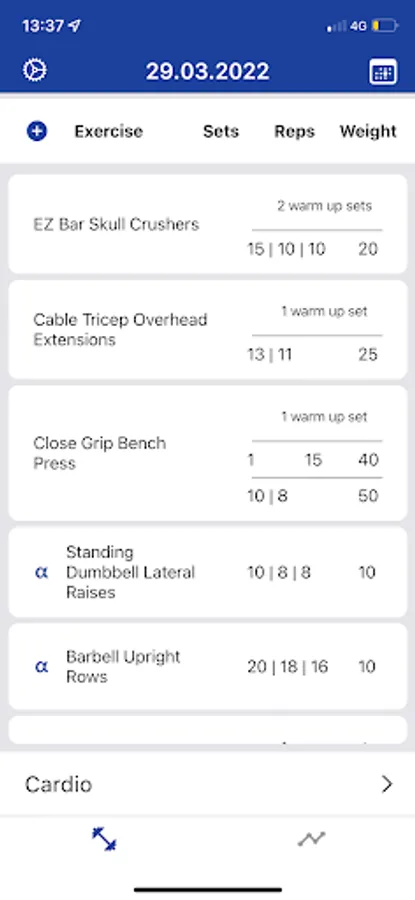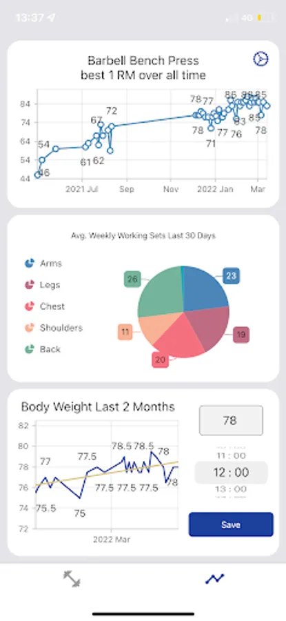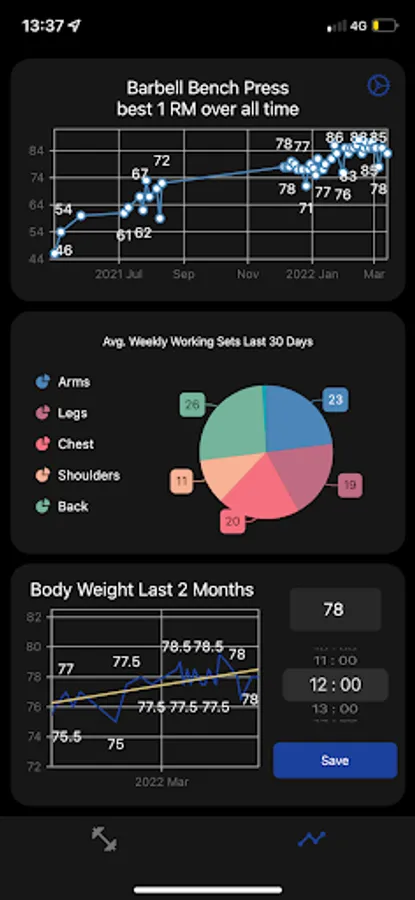 This is an app that helps you track your gym progress. It's easy to use and has a lot of intuitive features that help analyzing your progress over time.