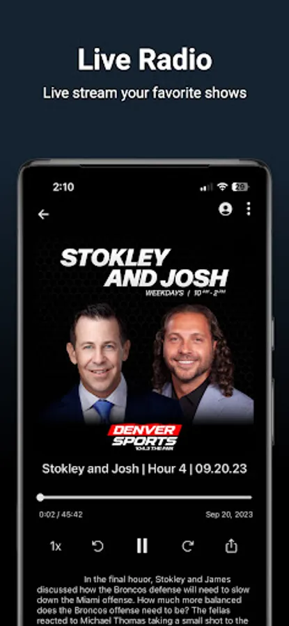 Connect with the shows live on-air via text, email, and social media. Get breaking sports news alerts via push notifications and in-app messaging. Share your love for Denver teams with others who share your same passion.