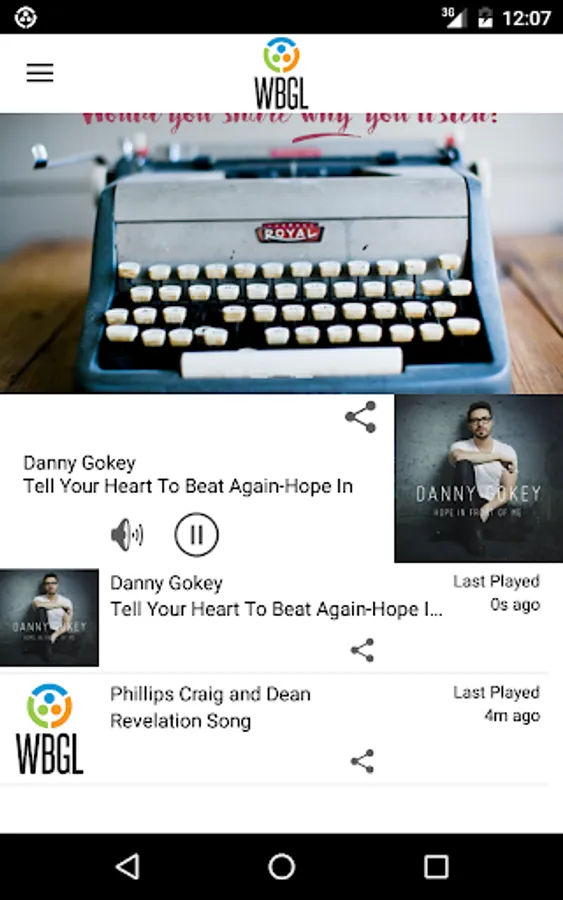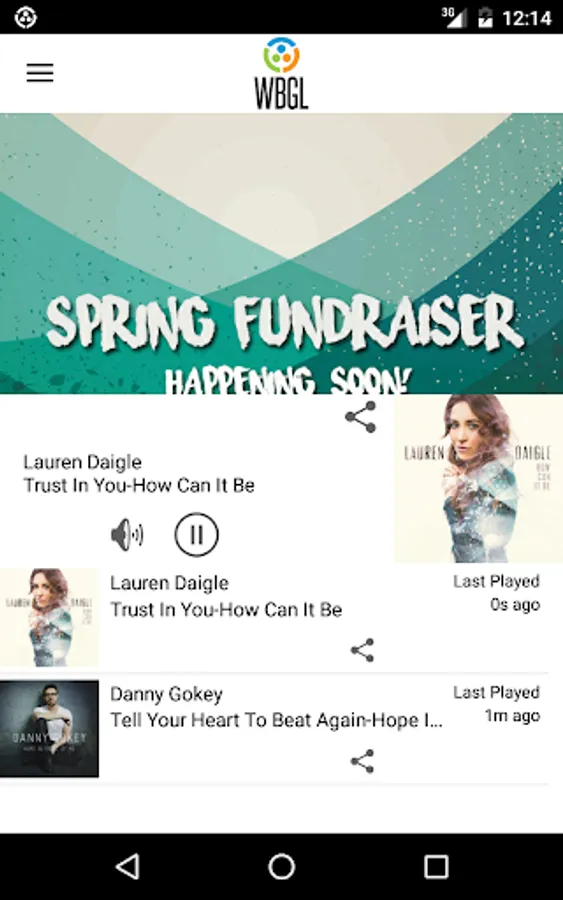 Inside the WBGL app, you can request prayer and get notified instantly when someone prays for you! Interact with your WBGL friends through text, phone, and email. Discover recently played songs, get yourself heard on the radio with Open Mic, and receive hope and encouragement in your faith no matter where you are when you download the WBGL app.
