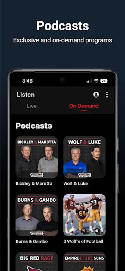Never miss an Arizona Sports show with podcasts from all your favorite hosts: Bickley & Marotta 6-10 a.m., Wolf & Luke 10 a.m. to 2 p.m. and Burns & Gambo 2-6 p.m. Pick up where you left off and share highlights and episodes with your friends.