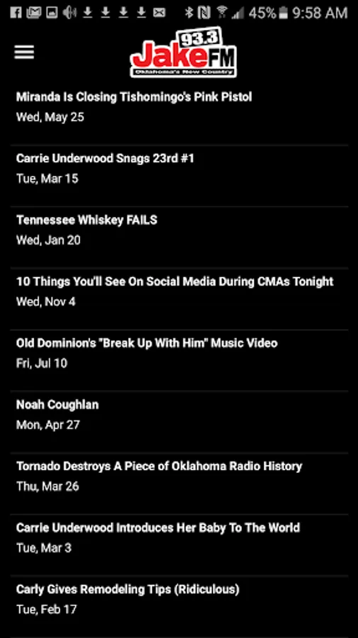 93.3 Jake FM Specializes in Oklahoma’s New Country. When you listen to Jake FM, you hear today’s new crop of superstars like Taylor Swift, Jason Aldean, The Zac Brown Band, Blake Shelton and Miranda Lambert.