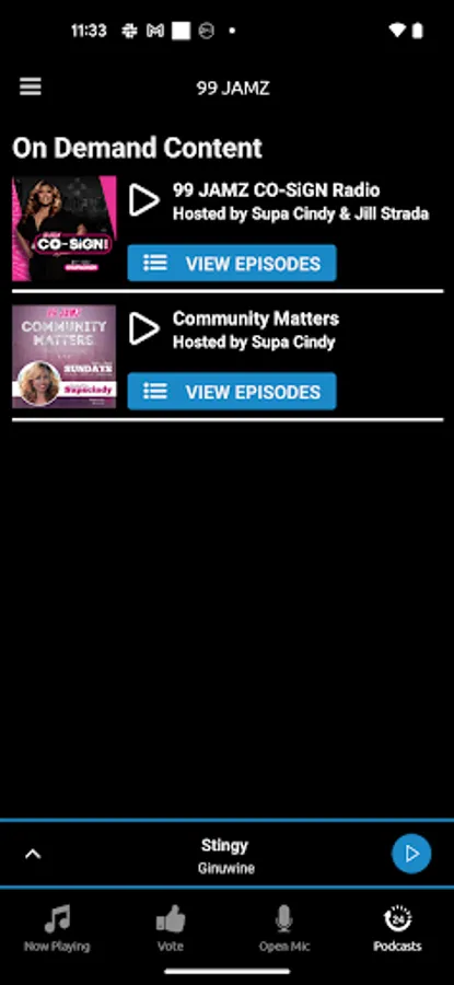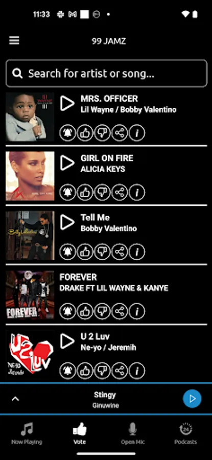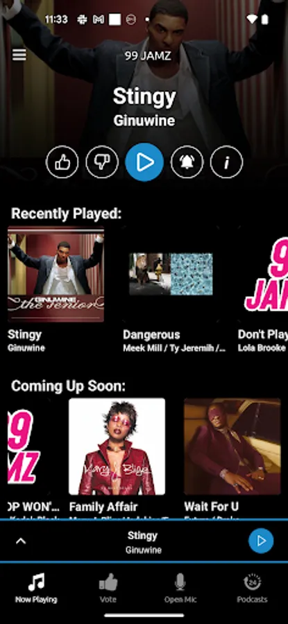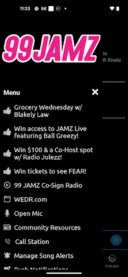This app allows you to hear 99 Jamz live 24/7, vote on the music that you want to hear from your favorite Hip-Hop and R&B artist, record a message to play on air with our "Open Mic" feature, set up reminders/alarms with custom recorded messages from your favorite 99 Jamz artists and more!