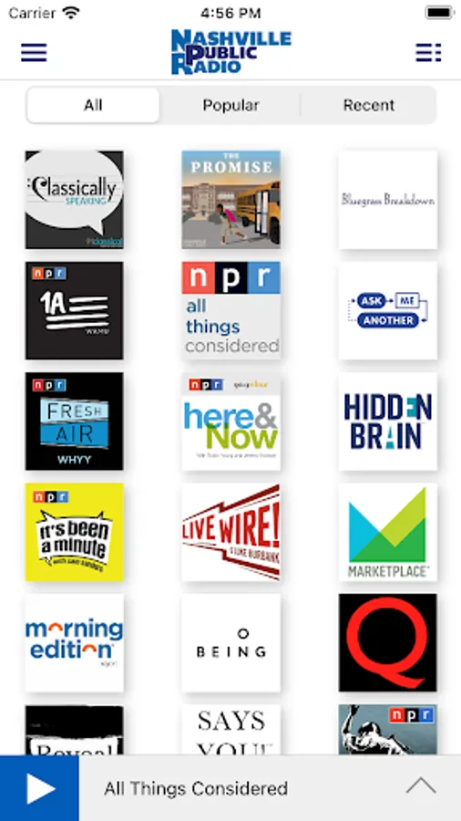 The Nashville Public Radio App is brought to you by Nashville Public Radio and Public Media Apps. We work to provide our valued listeners with great solutions to find what you want, when you want it, on whatever device you have!