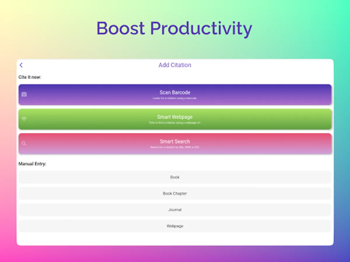 Cite It Now makes academic referencing a quick and easy task, complete with book, webpage and journal article citation look up features.
