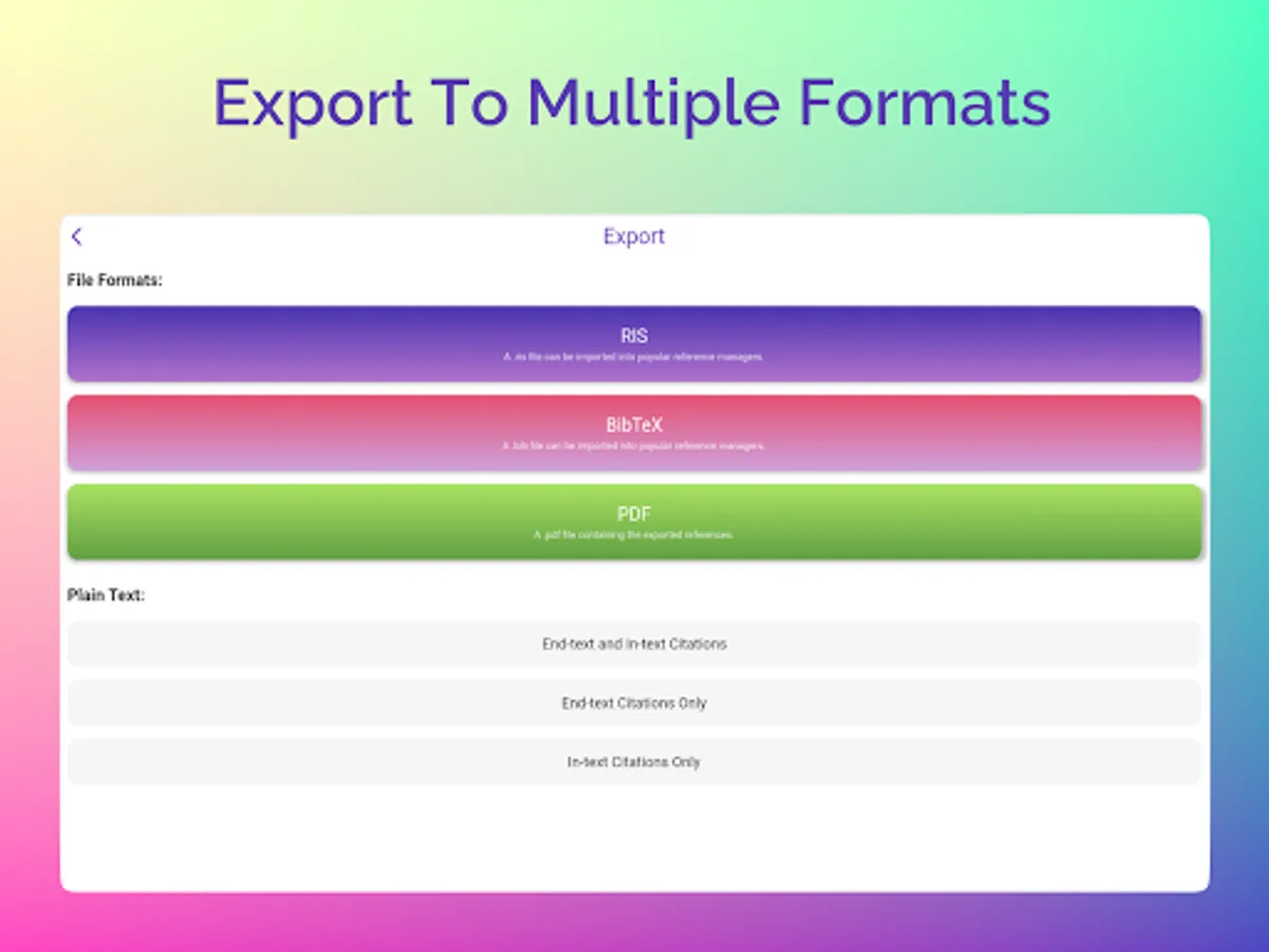Easily manage your citations into projects and with support for multiple referencing styles including APA, MLA or simply export to popular reference managers for even more styles.