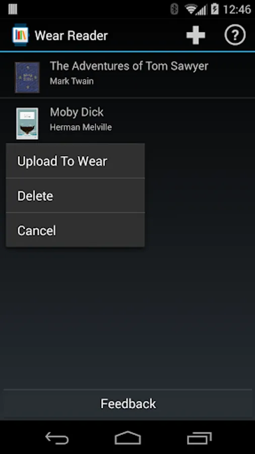 Whether you're on the train, bus, or subway, you'll never again have to grab a book from your bag again. Wear Reader lets you read books straight from your wrist while you're on the go. Simply upload your favorite book to your Android device, attach your Android wear, and you're ready to read!