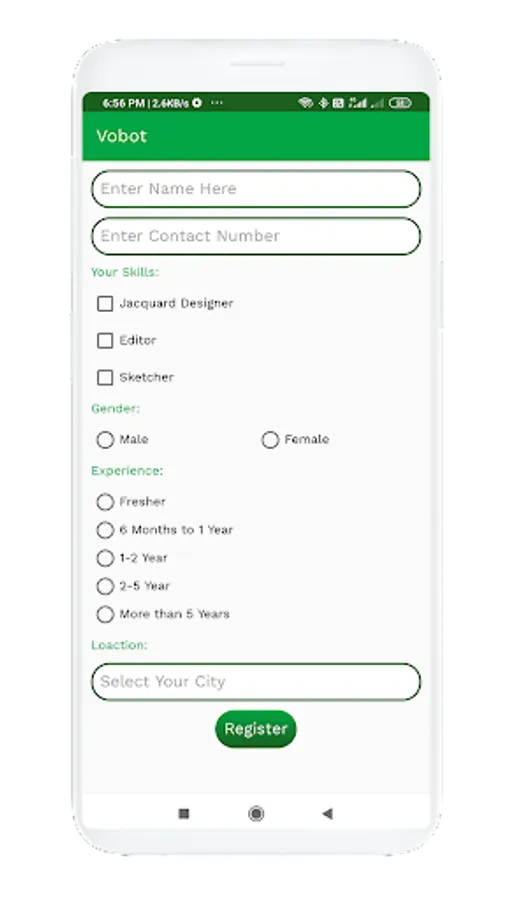 -The application provides a large platform in which Jacquard Designers & Sketchers are registered yourself with their Name, Interest & with their Contact Details in the registration section and got Jacquard related work form Textile World by using their contact details.