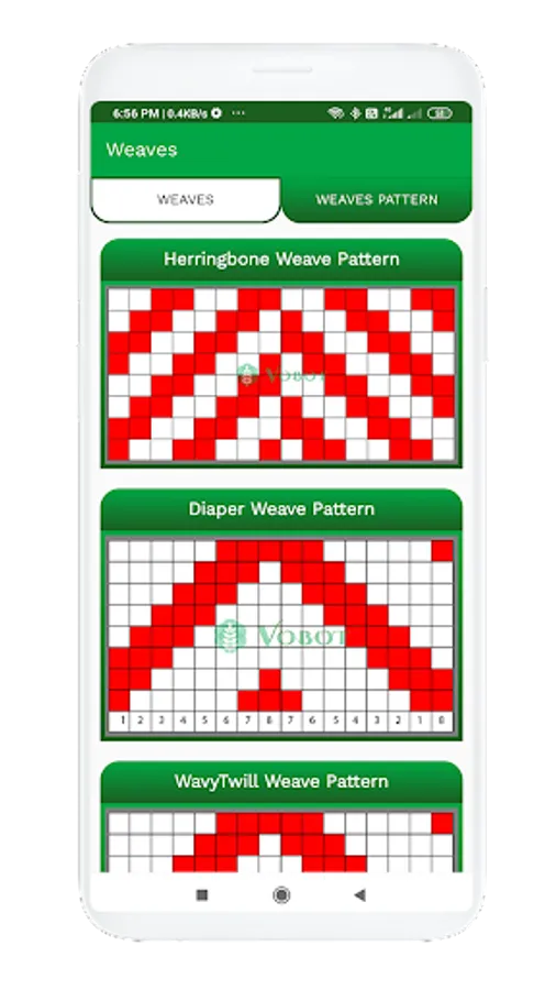 -Vobot application also includes all types of 20+ basic weaves for the production of fabric as well as 30+ fancy weaves which are very useful to make fancy fabric.