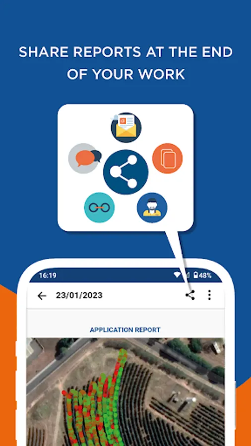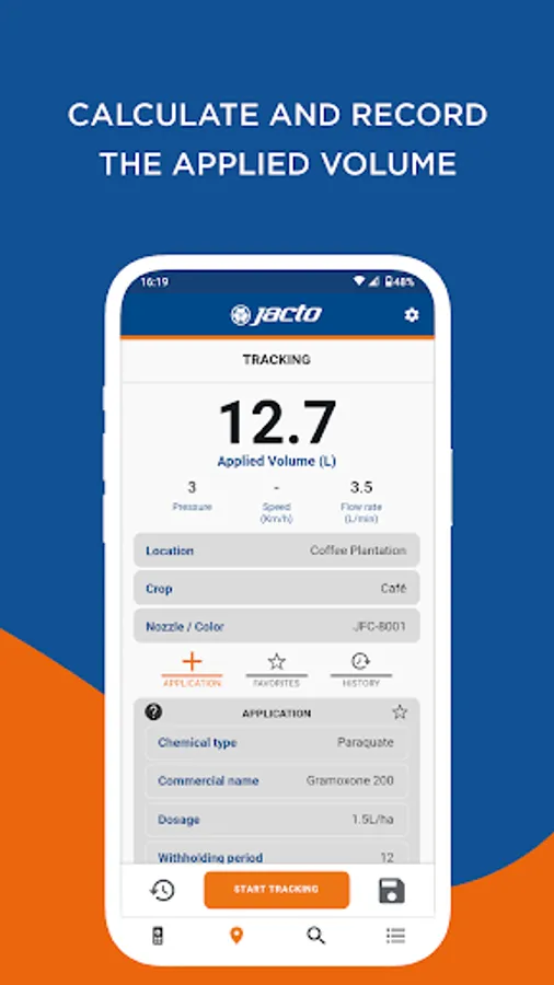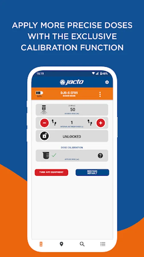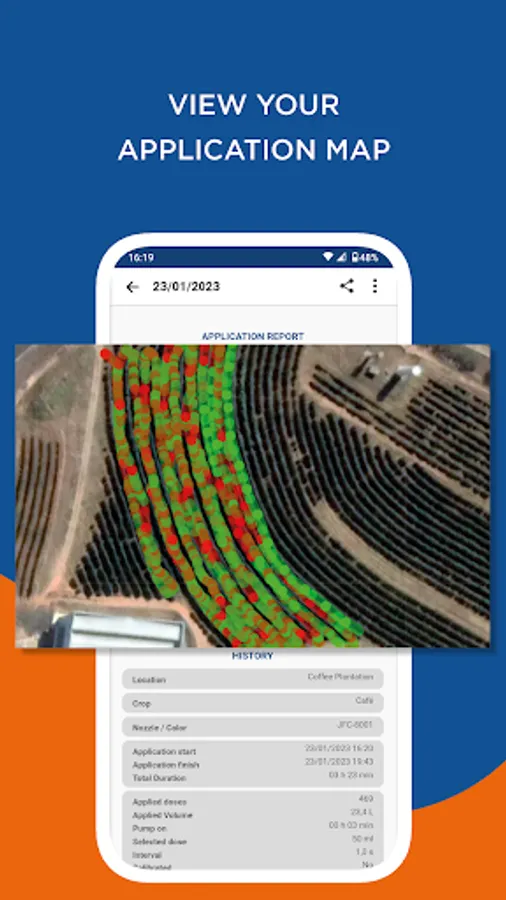 With the Jacto Smart Control app, you connect to the equipment, generate spraying reports, adjust the product application dosage in the field, map the region and amount of products applied at the end of the day.