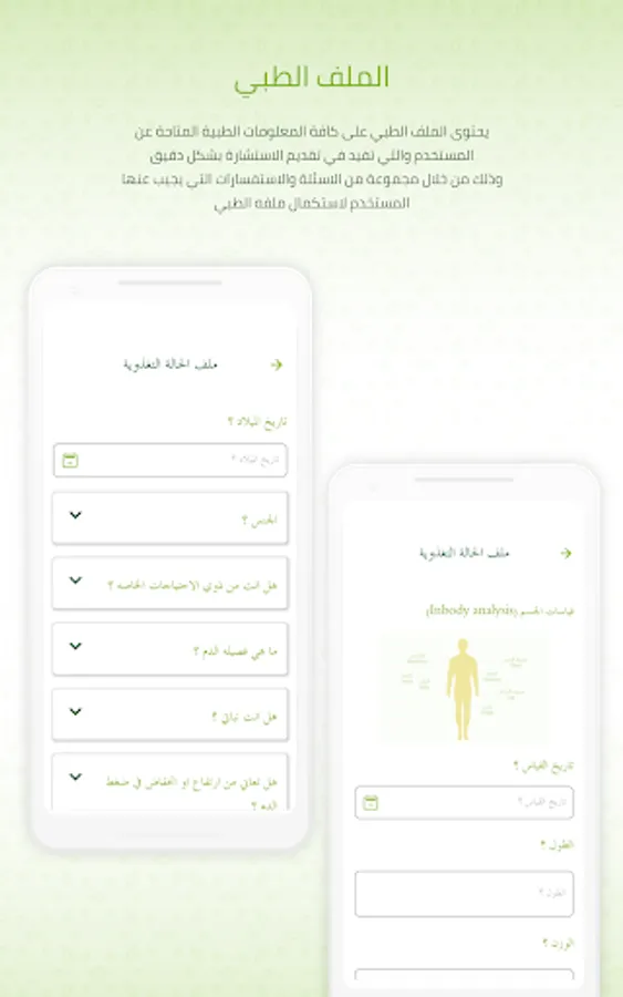 The application contains a set of important elements such as (the library - the online store - the medical file - the consultation request form).