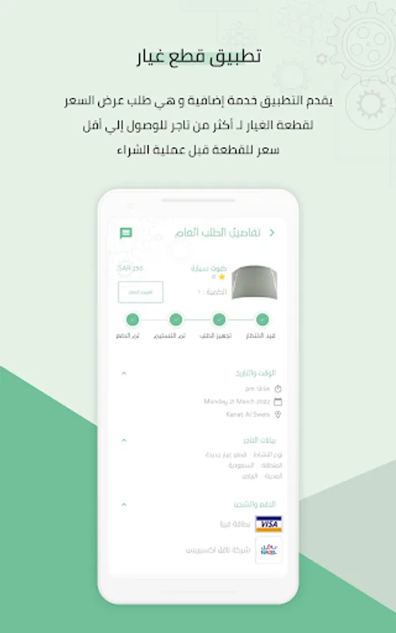 تابع لمؤسسة قطع غيار والتي تسعى لتحقيق المعادلة الأصعب و هي الربط بين التاجر وا لعميل في إطار من الشفافية و المصلحة المتبادلة و تحقيق النفع العام لكل من التاجر أو مقدم الخدمة و طالب الخدمة منصة قطع غيار تسعى لتوفير الجهد و اختصار الوقت و تقليل التكلفة في عملية بيع . أو اقتناء قطع غيار السيارات