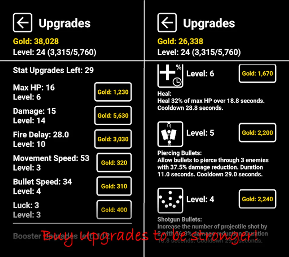 - New Enemy: squares that shoot back at you in a variety of ways. Drops gold and healing items.