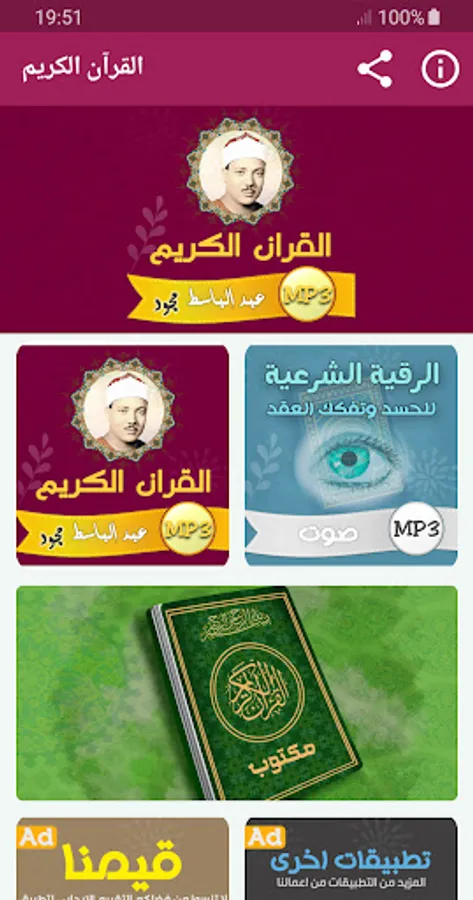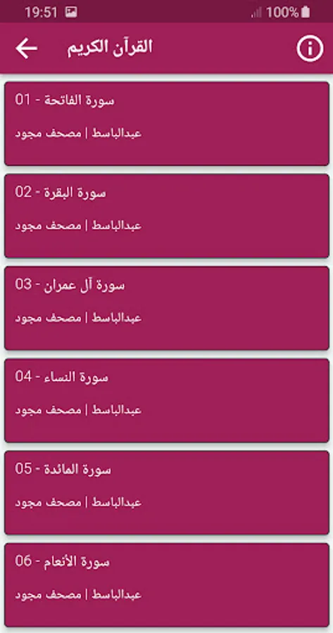 The application of the Noble Qur’an complete Majued, with the voice of the reciter Abdul Basit Abdul Samad, allows you to hear the surahs of the Qur’an with ease so that you can enjoy reciting the Qur’an with high sound quality