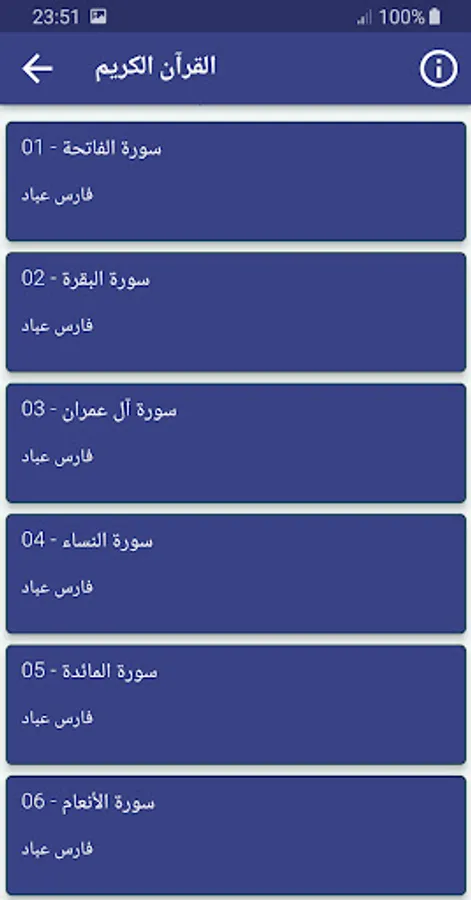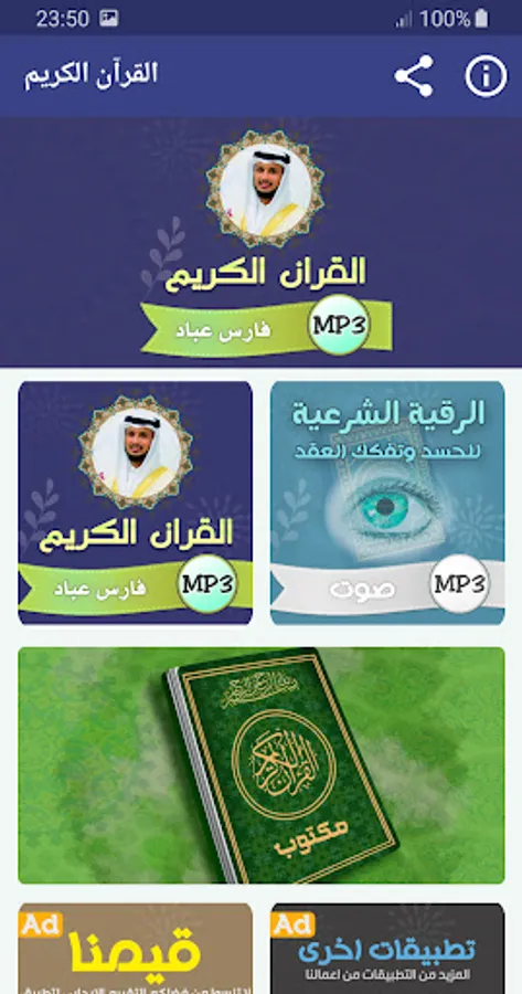 The application of the Noble Qur’an is complete, with the voice of the reciter Fares Abbad, that allows you to hear the surahs of the Qur’an with ease so that you can enjoy reciting the Qur’an with high sound quality