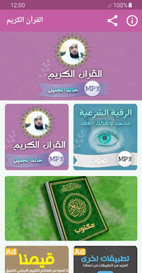 The application of the Noble Qur’an is complete, with the voice of the reciter Khaled Al Jalil, that allows you to hear the surahs of the Qur’an with ease so that you can enjoy reciting the Qur’an with high sound quality