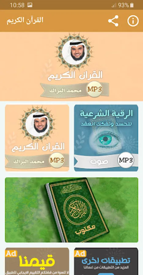 The application of the Noble Qur’an with the voice of the reciter Muhammad Al-Barrak allows you to hear the surahs of the Qur’an with ease so that you can enjoy reciting the Qur’an with high sound quality