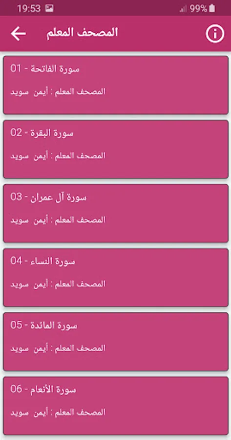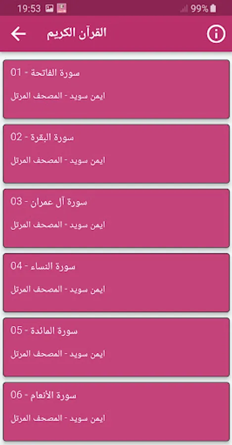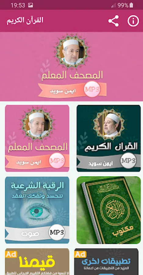 The application of memorizing the Noble Qur’an complete with the voice of the reader, Ayman Suwaid, allows you to hear the surahs of the Holy Qur’an with ease so that you can enjoy reciting the Qur’an with high sound quality