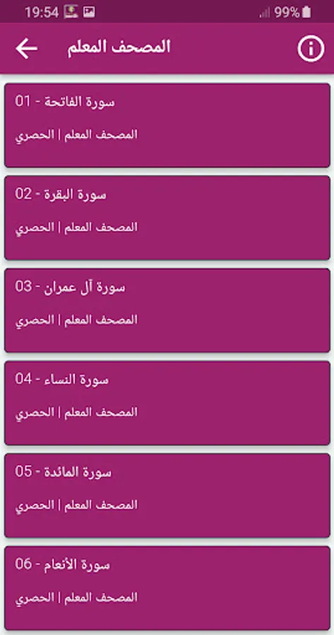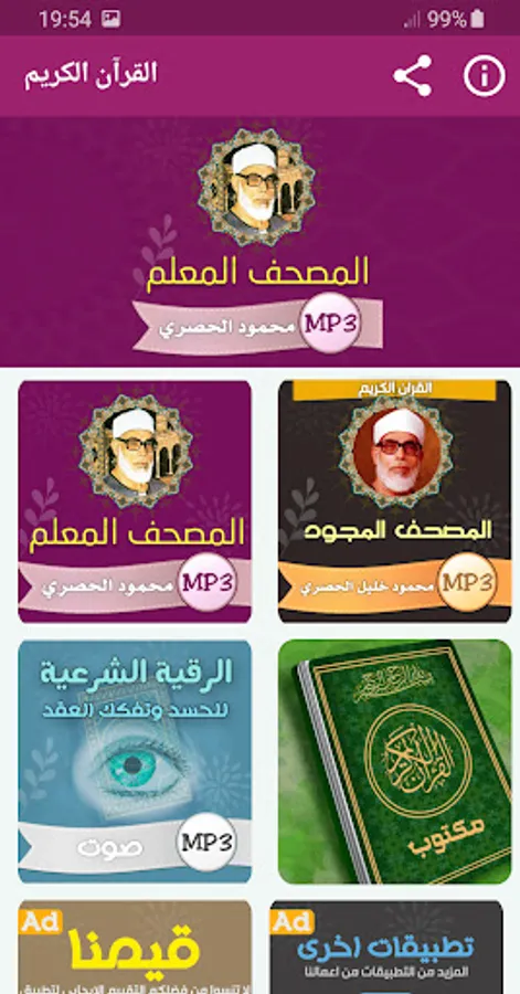 The application of memorizing the Noble Qur’an, complete with the voice of the reader Mahmoud Khalil Al-Hosari, allows you to hear the surahs of the Holy Qur’an with ease so that you can enjoy reciting the Qur’an with high sound quality